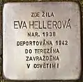 HERE LIVED EVA HELLEROVÁ BORN 1938 DEPORTED 1942 TO THERESIENSTADT MURDERED IN AUSCHWITZ |