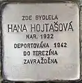 HERE LIVED HANA HOJTAŠOVÁ BORN 1932 DEPORTED 1942 TO THERESIENSTADT MURDERED |