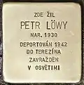 HERE LIVED PETR LÖWY BORN 1930 DEPORTED 1942 TO THERESIENSTADT MURDERED IN AUSCHWITZ |