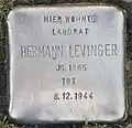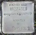 WIESBADEN CONJOINED SUICIDE BURIED IN ÜBERLINGEN HERE LIVED COUNTY COMMISSIONER HERMANN LEVINGER BORN 1865 DEAD 8.12.1944 |