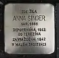 HERE LIVED ANNA SINGER BORN 1886 DEPORTED 1942 TO THERESIENSTADT MURDERED 1942 IN MALY TROSTINEC |