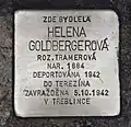 HERE LIVED HELENA GOLDBERGEROVÁ NÉE TRAMEROVÁ BORN 1884 DEPORTED 1942 TO THERESIENSTADT MURDERED 5.10.1942 IN TREBLINKA |