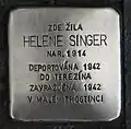 HERE LIVED HELENE SINGER BORN 1914 DEPORTED 1942 TO THERESIENSTADT MURDERED 1942 IN MALY TROSTINEC |