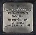 HERE LIVED ROSALIE WIESNER BORN 1858 DEPORTED 1942 TO AUSCHWITZ MURDERED 15.6.1942 IBIDEM |