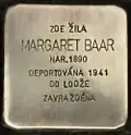 HERE LIVED MARGARET BAAR BORN 1890 DEPORTED 1941 TO ŁÓDŹ MURDERED |