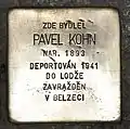HERE LIVED PAVEL KOHN BORN 1893 DEPORTED 1941 TO ŁÓDŹ MURDERED IN BELZEC |