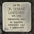 HERE LIVED DR. SIGMUND LANGSCHUR BORN 1884 DEPORTED 1942 TO THERESIENSTADT MURDERED 1942 IN BARANAVICHY |