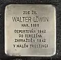 HERE LIVED WALTER LÖWIN BORN 1886 DEPORTED 1942 TO THERESIENSTADT MURDERED 1942 IN MALY TROSTINEC |