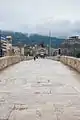 The current Stone Bridge was built on Roman foundations under the patronage of Sultan Mehmed II the Conqueror between 1451 and 1469.[6][7][8] Most of the Stone Bridge originates from the Ottoman period[9] and throughout the centuries, the Stone Bridge was often damaged and then repaired. There is historical evidence that it once suffered during the great earthquake of 1555 which heavily damaged or destroyed four pillars. Renovations were carried out the same year. Some executions have also taken place on this bridge, such as the execution of Karposh in 1689.