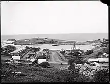 An artificial harbour was constructed in the 1880s,[18] with one breakwater running for 100 yards In a north-easterly direction and another to the south-east for 50 yards—from Cowrie Island—providing an entrance only 100 feet wide, with a depth of six feet of water.[15] The breakwater was extended westward around 1899,[19] to block completely the gap between Cowrie Island and the mainland.