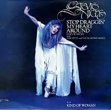 "Stop Draggin' My Heart Around" is a song recorded by Stevie Nicks and Tom Petty and the Heartbreakers and released as the first single from Nicks' debut solo album Bella Donna (1981). The track is the album's only song that was neither written nor co-written by Nicks. Written by Tom Petty and Mike Campbell as a Tom Petty and the Heartbreakers song, Jimmy Iovine, who was also working for Stevie Nicks at the time, arranged for her to sing on it.[1] Petty sang with Nicks in the chorus and bridge, while his entire band (save Ron Blair, whose bass track was played by Donald "Duck" Dunn instead) played on the song.