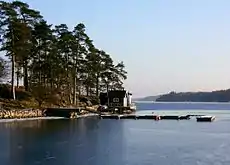 Stora Värtan is an inlet of the Baltic Sea located in the Stockholm archipelago north of the city of Stockholm, Sweden. It is bordered to the west by the municipalities of Täby and Danderyd, to the south by the municipality of Lidingö, to the north by the municipality of Österåker and to the northeast by the municipality of Vaxholm.