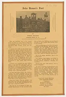 - "John Brown's Fort at Harper's Ferry. Last Stronghold of Abolitionist before He Went Marching On. Popular Place for Sightseers". Morning Post (Camden, New Jersey). January 17, 1918. p. 5. Archived from the original on June 29, 2021. Retrieved June 29, 2021 – via newspapers.com.