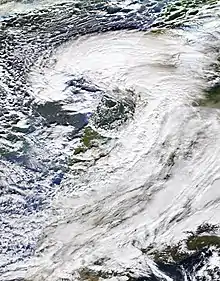 ![]() Storm Arwen as a powerful extratropical cyclone over the North Sea. | |