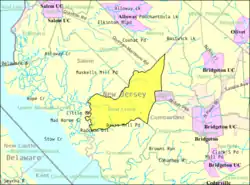 ![]() Stow Creek Township highlighted in Cumberland County. Inset map: Cumberland County highlighted in the State of New Jersey. | |