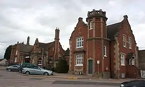 Nicklaus Pevsner described it as "an elaborate piece of Elizabethan architecture by Frederick J Barnes, 1849. Red and yellow brick, symmetrical, with shaped gables and angle towers."[21]