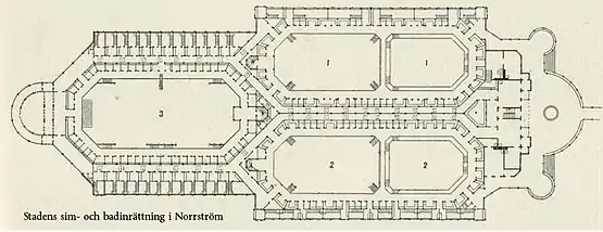 Strömbadet (or Stockholms Bad-och Siminrättning i Norrström) was the first large cold bathhouse in Stockholm, located in Norrström, just north of Riddarholmen. It was opened in 1884 and was made entirely of wood in neo-renaissance style. For the design was the architect brothers Axel Kumlien and Hjalmar Kumlien.[1]