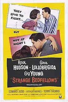 Strange Bedfellows is a 1965 American comedy film directed by Melvin Frank and starring Rock Hudson, Gina Lollobrigida, Gig Young, and Terry-Thomas.[1] It was released by Universal Studios.
