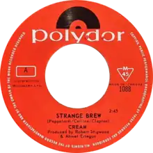 "Strange Brew" is a song by the British rock band Cream. First released as a single in June 1967 in the UK and US,[1] it was later added to their second studio album Disraeli Gears.[2] The song features Eric Clapton on lead vocals rather than the usual lead by Jack Bruce. The single peaked at number 17 on the UK Singles Chart in July of that same year. In the UK, it was the last Cream single to be released by Reaction Records.