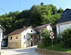 Stranska Vas pri Žužemberku stands on a terrace on the right bank of the Krka River, opposite Žužemberk Castle.[1] It is connected to Žužemberk by a bridge across the river. Bačknica Hill (508 meters or 1,667 feet) and the Žužemberk Woods (Žužemberški boršt), also known as the Town Woods (Trški boršt), stand southwest of the village. There is a walled spring near the summit of Bačknica Hill known as Bačkin studenec.[3]
