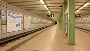 The entrances were moved and a new one was built.[2] In 2003, the station was renovated and green panels were attached to the walls.