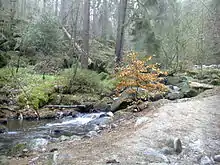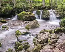 A stream is a continuous body of surface water[1] flowing within the bed and banks of a channel. Depending on its location or certain characteristics, a stream may be referred to by a variety of local or regional names. Long large streams are usually called rivers, while smaller, less voluminous and more intermittent streams are known as streamlets, brooks or creeks, etc.