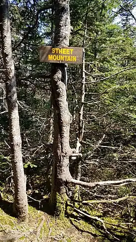 ![]() The trail sign at Street Mountain's peak. | |