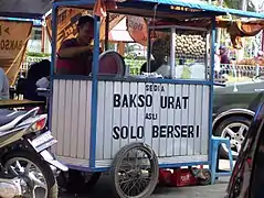 Indonesian street food is a collection of ready-to-eat meals, snacks, fruits and drinks sold by hawkers or vendors at warung food stalls or food carts. Street food in Indonesia is a diverse mix of local Indonesian, Chinese, and Dutch influences.[1] Indonesian street food are usually cheap, offer a great variety of food of different tastes, and can be found on every corner of the city.[2]