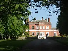 Stretton Hall is a country house in the parish of Stretton in Shropshire, England. It was built in about 1763 for John Leche.[1] The house is constructed in brick on a sandstone basement, with painted stone dressings, and a slate roof. It has three symmetrical elevations. The entrance front is in three two-storey bays with a single-storey wing on each side. The central bay is canted, with five steps leading up to a doorway with a pediment. The windows are sashes. The garden front has similar windows, other than the wings, each of which contains a Venetian window. To the right of the house is attached a further wing, converted from the 17th-century stable of an earlier house. The house and former stable area is recorded in the National Heritage List for England as a designated Grade II* listed building.[2] The sandstone garden walls are listed at Grade II.[3]