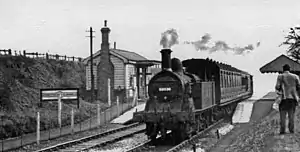 The station was built of timber throughout. There was a small booking office, and general and ladies’ waiting rooms on the main platform, with an open-fronted shelter on the other. Access was by inclined ramps from the road way outside. The LMS rebuilt the platforms in concrete, halving them to 150 foot.