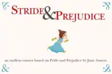Stride & Prejudice is an endless running game developed by No Crusts Interactive and directed by Carla Engelbrecht Fisher. It is based on the 1813 novel Pride and Prejudice by Jane Austen. Players control Austen's character Elizabeth Bennett in a two-dimensional perspective as she runs along the words in the novel's text, tapping the touchscreen to jump whenever a gap appears. Players can either choose to play until they fall or play endlessly regardless of falling. Fisher designed the game with the intention of creating a gateway to both game players and book readers, as well as to celebrate the 200th anniversary of Pride and Prejudice. It has received a generally positive reception for the cleverness of the concept, though reviewers were also critical of the constant pace of the reading and the relative difficulty involved in retaining information.