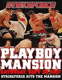 Strikeforce: Playboy Mansion was a mixed martial arts event promoted by Strikeforce. The event took place on September 29, 2007 at the Playboy Mansion in Los Angeles, California. The invitation-only event drew nearly 1,000 spectators who paid $1000 per ticket. The event was supervised by the California State Athletic Commission. Fights 5 to 12 were streamed live on Yahoo Sports for free.[1]