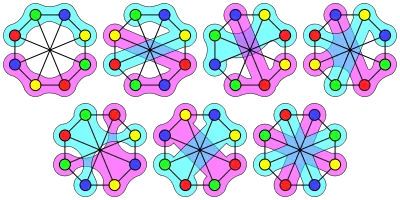 In graph theory, a strong coloring, with respect to a partition of the vertices into (disjoint) subsets of equal sizes, is a (proper) vertex coloring in which every color appears exactly once in every part. A graph is strongly k-colorable if, for each partition of the vertices into sets of size k, it admits a strong coloring. When the order of the graph G is not divisible by k, we add isolated vertices to G just enough to make the order of the new graph G′ divisible by k. In that case, a strong coloring of G′ minus the previously added isolated vertices is considered a strong coloring of G. [1]