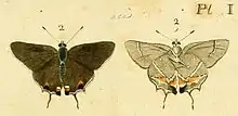 The larvae feed on the flower buds and young fruits of Croton linearis.[1]