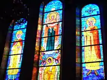 The wooden frame of the iconostas was hand-carved from oak by Paul Mozes of New York. The icons are the work of Ivan Dykyj. The stained glass windows are the work of Yaroslaw Baransky of Yonkers, New York. The windows in the southern apse portray the Protection of the Mother of God, flanked by Saint Volodymyr and Saint Olha. The windows in the northern apse portray some of the patron saints of Ukraine: Saint Andrew the Apostle, who first came to Ukraine to proclaim the word of God, Saint George (Yuriy) the Conqueror, and Saint Michael the Archangel.