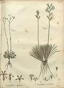 | Illustration by Poiteau, the species is shown in fig. 1, with the caption "Candollea glauca" | |