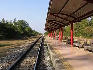 Suan Son Pradiphat Railway Halt is a railway halt located in Nong Kae Subdistrict, Hua Hin District, Prachuap Khiri Khan. It is located 221.03 km (137.3 mi) from Thon Buri Railway Station. Nearby is Thailand's first automatic level crossing, which opened for use on August 7, 2010 by Abhisit Vejjajiva while he was a Prime Minister. An excursion train terminating here, runs from Bangkok every weekend.