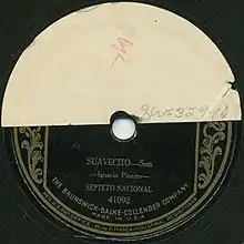 "Suavecito" was first recorded by the Nacional in Madrid on 3 October 1929, during the sessions for His Master's Voice, and released shortly thereafter.[5] The lineup for the session included vocalists Bienvenido León and Juan de la Cruz, trumpeter Lázaro Herrera, bongosero Agustín Gutiérrez, guitarist Eutimio Constantín, tresero Francisco Solares González, and the leader, Ignacio Piñeiro, on double bass.[5] According to Jesús Blanco, Piñeiro wrote "Suavecito" about a Cuban woman named Carola whom they met in New York.[6]