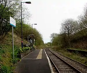 The station has basic amenities only - a waiting shelter and timetable poster boards - although it has had a digital CIS display fitted. There is no step-free access available, due to the station entrance being some distance from the nearest road (the A483) along a narrow path and in a cutting.[9]