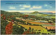 The world first heard of the Conyngham Valley after the Sugarloaf massacre of 1780 in which roughly ten Americans were killed by a group of Native Americans and perhaps a handful of loyalists. After the skirmish, burial parties arrived in the valley to bury the slain soldiers. Settlers were attracted to the region from the stories they heard from those who visited the valley.[5]