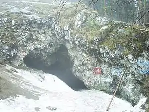 Sugomak Cave (Russian: Сугомакская пещера) is located in Ural, on the east slope of the Sugomak Mountain near the town of Kyshtym. The Sugomak Cave is the only cavity in Ural developed in marble by water.[1] It is the main local sight and represents a cavity consisting of three grottos which are connected by narrow passages. The third grotto is partially filled by water.