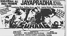 Suhaag (transl. Marriage) is a 1994 Indian Hindi-language action film directed by Kuku Kohli starring Ajay Devgn, Akshay Kumar, Karisma Kapoor and Nagma. Suhaag was one of the highest-grossing Bollywood films of 1994 and was the first film where actors Ajay Devgn and Akshay Kumar shared screen space. It was after a decade that the duo went on to appear in Khakee (2004) and then in Insan (2005) the very next year.