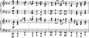 In contrast to the First Suite for Two Pianos, the work is not based on literature, and its form tends to approach the traditional suite.[1] The movements are: