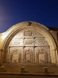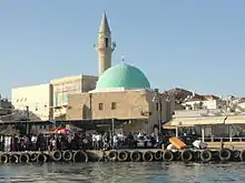 Sulayman did not launch major commercial building projects in Acre like Jazzar. In 1817 he had Zahir al-Umar's souk (bazaar) rebuilt after it was destroyed by a fire. It has since become known as Souk al-Abyad. The Sinan Mosque of Acre, which had been the only mosque in the city in 1700, was rebuilt by Sulayman. It is also known as the Bahr Mosque (Sea Mosque).[26] In 1815 he restored the Kabri aqueduct to Acre which had been built by Jazzar but destroyed during Napoleon's 1799 siege.[27] In 1810, Sulayman built a khan (caravanserai) for the donkey market in Acre.[26] Sulayman also invested his own money to fund several renovation works in Jerusalem and its vicinity.[10] Among the projects was the restoration of the al-Aqsa Mosque in 1816.[28]