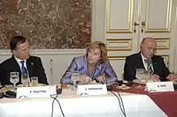 Together with the leaders of the three most important 'nationalist' political parties in Bosnia and Herzegovina, who acted as representatives of the constituent peoples, Milorad Dodik of the SNSD and Dragan Čović of the Croatian Democratic Union of Bosnia and Herzegovina (HDZ BiH), Tihić created the Prud Agreement or Prud Process, an agreement that pertained to state property, census, constitutional changes, reconstructing the Council of Ministers of Bosnia and Herzegovina and solving the legal status of Brčko District. The agreement was created in the village of Prud on 8 November 2008.[8][9][10] The reforms promised by the agreement would "build the ability of the State to meet the requirements of the EU integration process".[11]