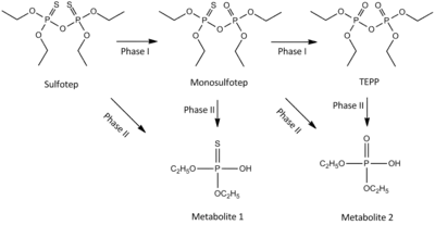 The two Phase I metabolites are further transformed through a hydrolysis-reaction mediated by a type A-esterase. The products formed are O,O-diethyldithiophosphate and O,O-diethylphosphate.[23]