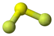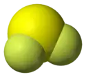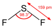 The F−S−F bond angle is 98°, and the length of S−F bond is 159 pm.[1] The compound is highly unstable, decomposing to FSSF3. This unsymmetrical isomer of S2F4 is proposed to arise via insertion of SF2 into the S−F bond of a second molecule SF2:[2]