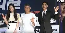 In 2013, Sulli and group mate Krystal Jung became the new faces of the makeup brand, Etude House.[27] In the midst of Red Light promotions, on July 24, 2014, SM Entertainment announced that Sulli decided to take a break from the South Korean entertainment industry due to being mentally and physically exhausted from the continuous malicious comments and rumors of her dating Dynamic Duo rapper Choiza, which was not confirmed at the time, and false rumors of her being pregnant.[28][29][30][31] Moreover, due to her hiatus, she did not participate in the promotion of the 2014 period adventure film The Pirates alongside Son Ye-jin and Kim Nam-gil,[19][32] where she played a supporting character named Heuk-myo, a young girl who became a pirate after being saved by the female captain. However, later that same year, she resumed her acting career by attending the promotion of the 2014 comedy film Fashion King, based on the webtoon series of the same name, where she played a leading role alongside Joo Won and Kim Sung-oh.[33] In August 2015, a year into her hiatus, it was announced that Sulli had officially withdrawn from the group.[34]
