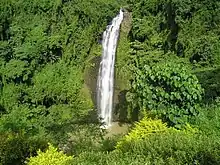 - The falls is located along the Sayre Highway and less than a kilometer distance from the Municipal Hall. Its imposing grandeur can easily be seen by travelers on motor vehicles. It is approximately 148 feet (45 m) high. However, due to ongoing public constructions, it may be difficult to catch a glimpse of the attraction. But the falls will be open to public again soon.