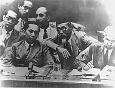 After the end of the war, Sumitro briefly joined a Dutch delegation in an United Nations Security Council meeting in London on January 1946, before returning to Indonesia in March that year.[8][9] According to British reports, Sumitro had been included in the delegation to provide a good impression for the Dutch government, but Sumitro became disillusioned and decided to return to his home country.[10] He joined the new Republican government, becoming an assistant to Prime Minister Sutan Sjahrir and later working at the Ministry of Finance.[11] In the leadup to the 3 July affair in 1946, Sumitro alongside Sjahrir and welfare minister Darmawan Mangunkusumo were kidnapped by disgruntled army units.[12] Still in 1946, he was assigned to the Indonesian delegation to the United Nations in the United States, becoming deputy chief of mission and minister plenipotentiary for economic affairs. He would remain in this posting until 1950.[2][13]